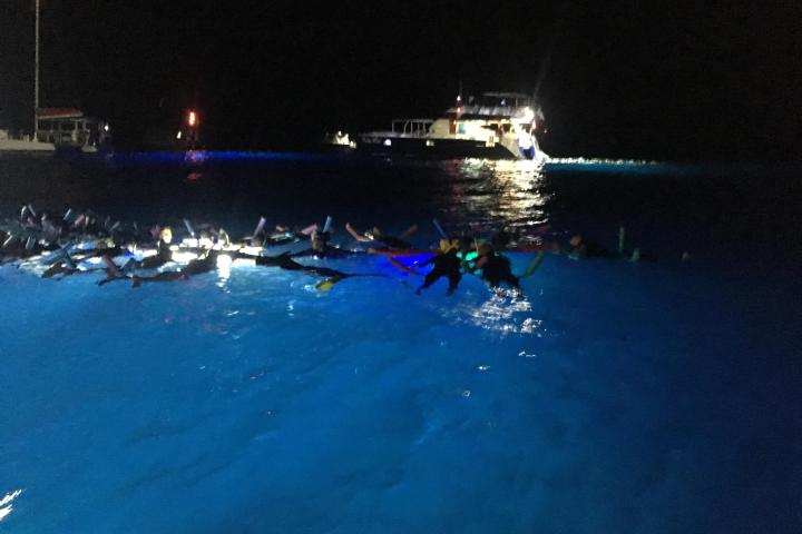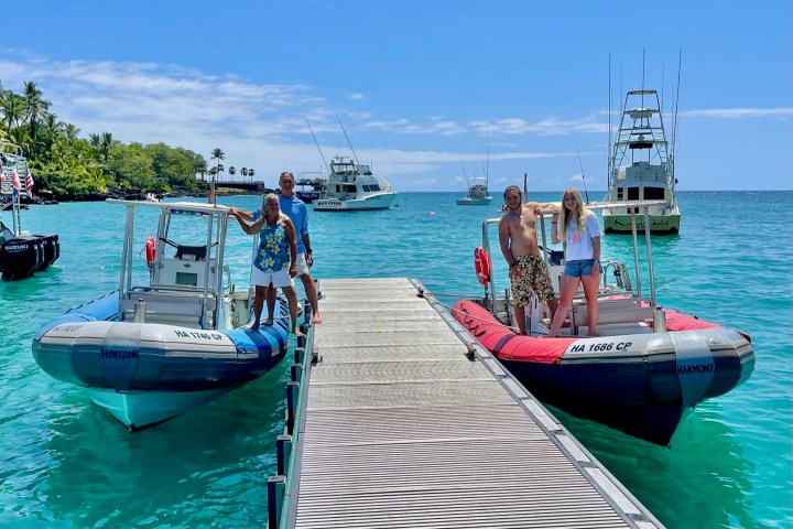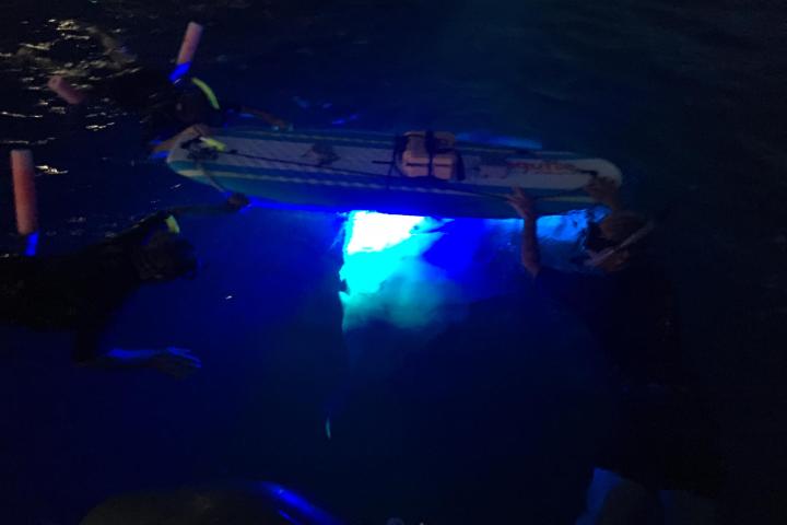 Join us for our one-hour twilight boat trip out of Keauhou Harbor to snorkel with manta rays just off the Big Island. This early nighttime snorkeling excursion is a must-do on Hawaii! Once we’ve reached our snorkel site, you slide into the Pacific Ocean and grab onto our light board. Not only is this for your stability in the water, but the underwater dive lights also attract the phytoplankton, or dinner for our manta rays.